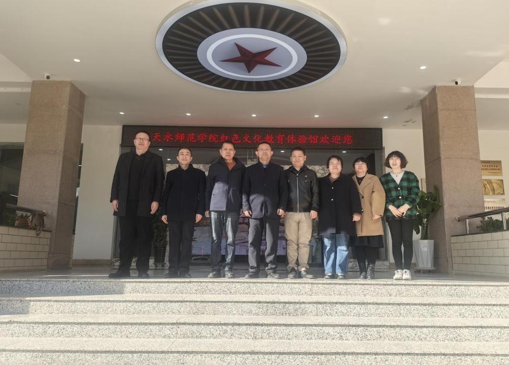 天水师范学院马克思主义学院党总支书记陈俊亮对调研组一行表示热烈的欢迎。天水师范学院马克思主义学院院长刘建军教授总体介绍了天水师院马院的历史概况、发展渊源、主要工作和成绩以及今后的发展规划。两位副院长余明远、张敬花分别介绍了思想政治教育专业建设和思想政治理论课教学改革方面的宝贵经验和成功做法。双方就思想政治教育专业建设和师范类认证工作交换了意见。学院一行还参观了天水师范学院马克思主义学院“红色文化教育体验馆”,刘建军院长介绍了体验馆的建成和运用情况。通过参观学习,为马克思主义学院强化育人实效,有效开展红色文化教育与传承创新提供指导。