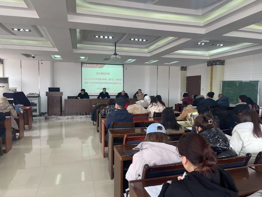 2025年2月22日下午,音乐舞蹈学院全体教职工在音乐楼207会议室召开了2024-2025学年第二学期工作部署暨新一轮本科教育教学审核工作启动会。